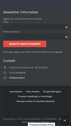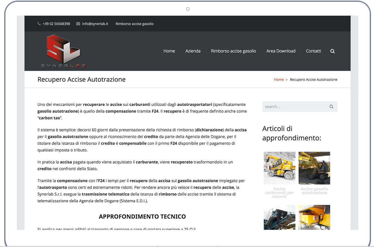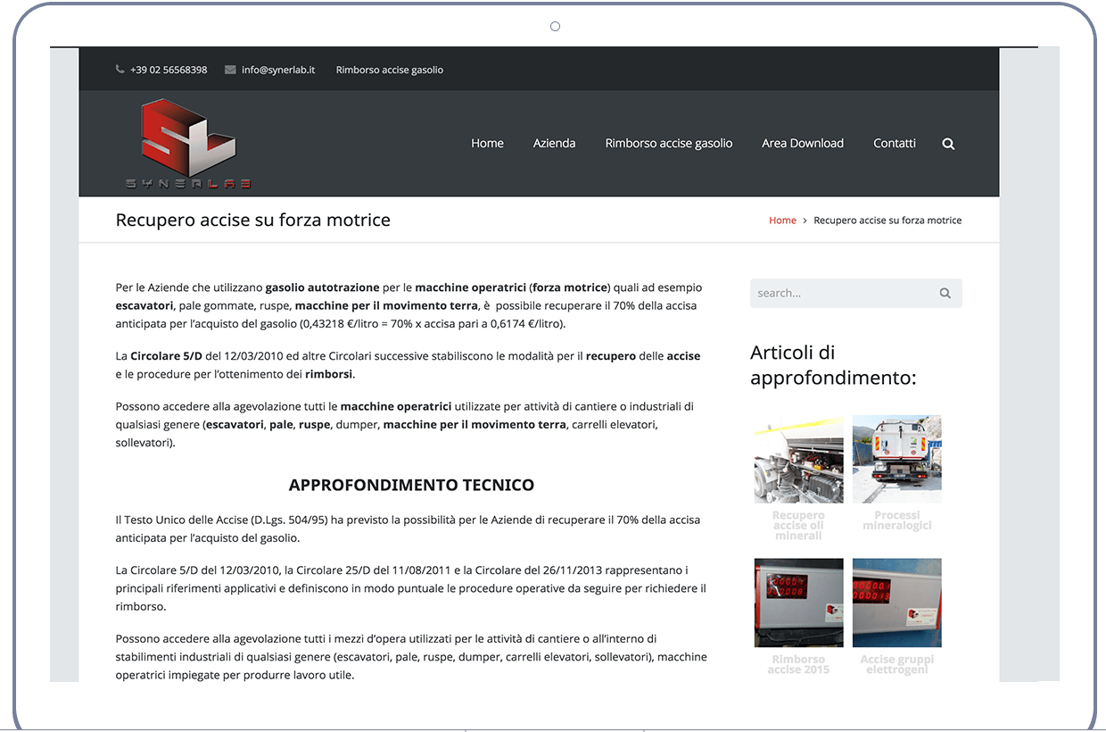 Synerbox è lo strumento indispensabile per il recupero accise da parte della tua attività. Synerbox è il contatore-contagiri elettronico brevettato da Synerlab, per le aziende che intendono ottenere l’agevolazione fiscale sul gasolio usato dalle macchine industriali. L’ottenimento dei benefici fiscali, infatti, è condizionata all’installazione della strumentazione per la misurazione della forza motrice su tutti i macchinari industriali per i quali si intende richiedere la defiscalizzazione del gasolio. Synerlab si occupa di tutto, e non richiede investimenti iniziali. Contattaci oggi
