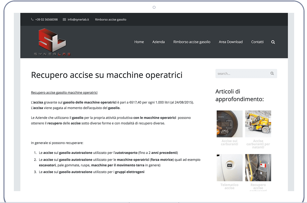 Le Aziende che utilizzano il gasolio per la propria attività produttiva con le macchine operatrici possono ottenere il recupero delle accise sotto diverse forme e con modalità di recupero diverse. In generale si possono recuperare: Le accise sul gasolio autotrazione utilizzato per l’autotrasporto (fino a 2 anni precedenti) Le accise sul gasolio autotrazione utilizzato per le macchine operatrici (forza motrice) quali ad esempio escavatori, pale gommate, ruspe, macchine per il movimento terra in genere) Le accise sul gasolio autotrazione utilizzato per i gruppi elettrogeni